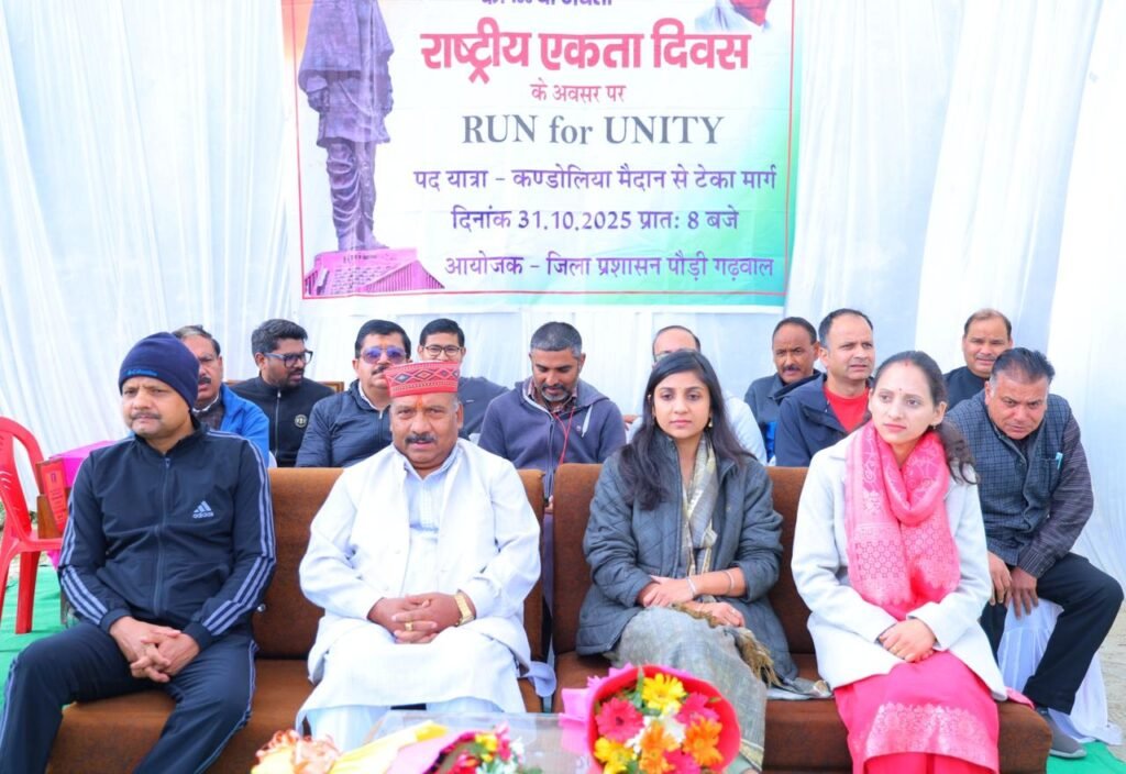पौड़ी- सरदार वल्लभभाई पटेल की 150वीं जयंती के अवसर पर जनपद पौड़ी मुख्यालय के कंडोलिया मैदान में राष्ट्रीय एकता दिवस बड़े उत्साह और देशभक्ति के माहौल में मनाया गया। कार्यक्रम के मुख्य अतिथि स्थानीय विधायक राजकुमार पोरी एवं जिलाधिकारी स्वाति एस. भदौरिया ने एकता एवं नशामुक्ति पथ यात्रा को हरी झंडी दिखाकर रवाना किया।