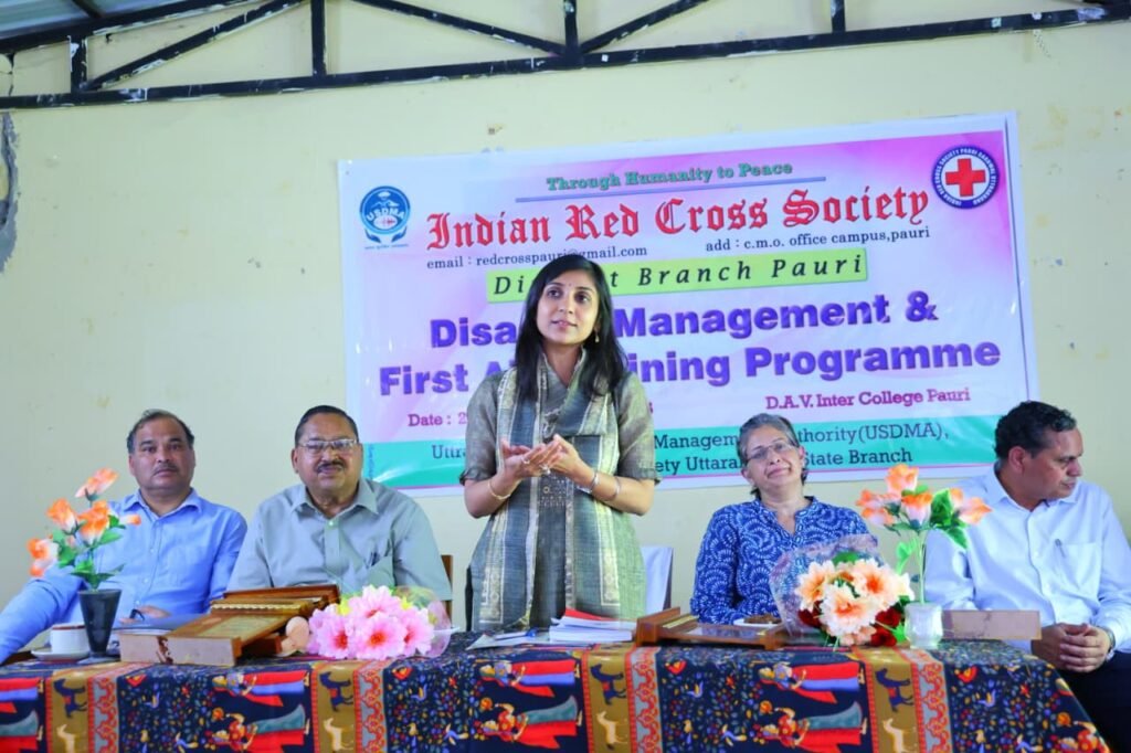 पौड़ी- डीएवी इंटर कॉलेज पौड़ी में भारतीय रेडक्रॉस सोसायटी, जिला शाखा पौड़ी के तत्वावधान में चार दिवसीय आपदा प्रबंधन प्रशिक्षण कार्यशाला का शुभारम्भ जिलाधिकारी एवं अध्यक्ष, भारतीय रेडक्रॉस सोसायटी जिला शाखा पौड़ी, स्वाति एस. भदौरिया द्वारा किया गया।