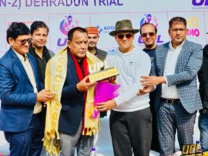 देहरादून: देहरादून के राजीव गांधी इंटरनेशनल स्टेडियम में पहले दिन का उत्तराखंड प्रो लीग का ट्रायल था। यूपीएल में संयुक्त रूप से मुख्य अतिथि एवं विशिष्ट अतिथि तीन आईपीएस अधिकारी थे।आईजी आनंद शंकर टकवाले, पूर्व आईजी यूकेएसएससी के चेयरमैन गणेश सिंह मार्तोलिया, आईजी विमला गुंजाल आईपीएस अधिकारी एवं सीआईएमएस एंड यूआईएचएमटी ग्रुप ऑफ़ कॉलेज के चेयरमैन एवं देहरादून कैपिटल के मालिक ललित जोशी , आरोग्यम हॉस्पिटल के चेयरमैन संदीप केडिया सहित यूपीएल के फाउंडर चेयरमैन डी बी चंद जी, जगजीवन कन्याल ने संयुक्त रूप से ट्रायल सेलेक्शन मैच का उद्घाटन किया।